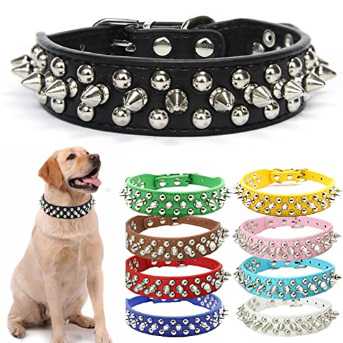 lowes DOGGYZSTYLE Spiked Studded Rivet Leather Dog Collar for Cats Puppy Small Medium Pets(Black,XS)